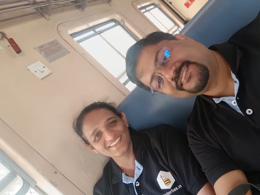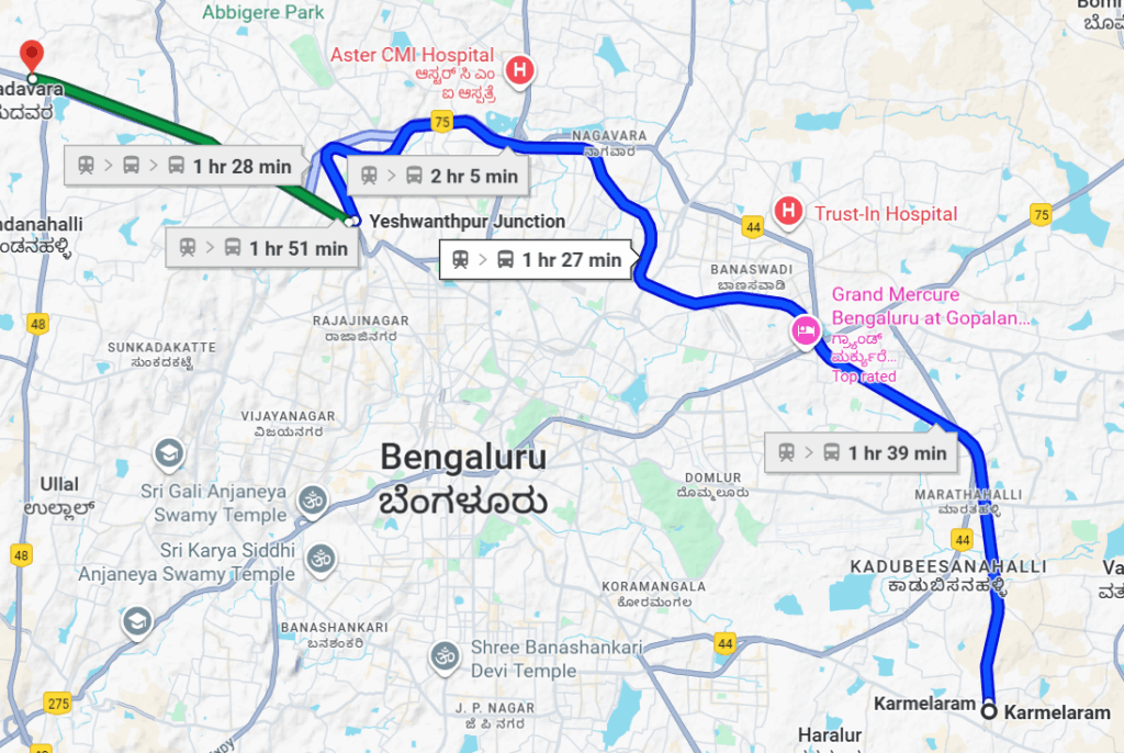 This time, we took a train from Carmelaram Station to Yeswanthpur railway station that took about 45 minutes and cost Rs. 10 each and then a metro from the Yeswanthpur station to the Madawara station that cost us Rs. 50 each and took only about 30 minutes! In all, it rook about one and a half hours. And for the first time, the journey did not seem tiring 🙂