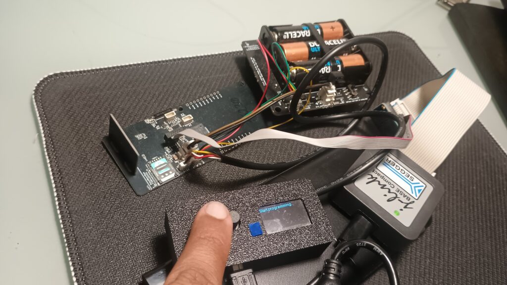 This is a game-changing dev gadget that enables ANYONE!, ANYWHERE!, to just plug in the SWD connector to the board’s programming port, plug in the UART (optional), press the button (the only button on it) and in a few seconds, erase, reflash, verify AND one can also specify keywords to check on the UART that can signal different steps to confirm firmware functionality (for example, we check for device IMEI check, cell-id allocation on network registration, and downlink confirmation).